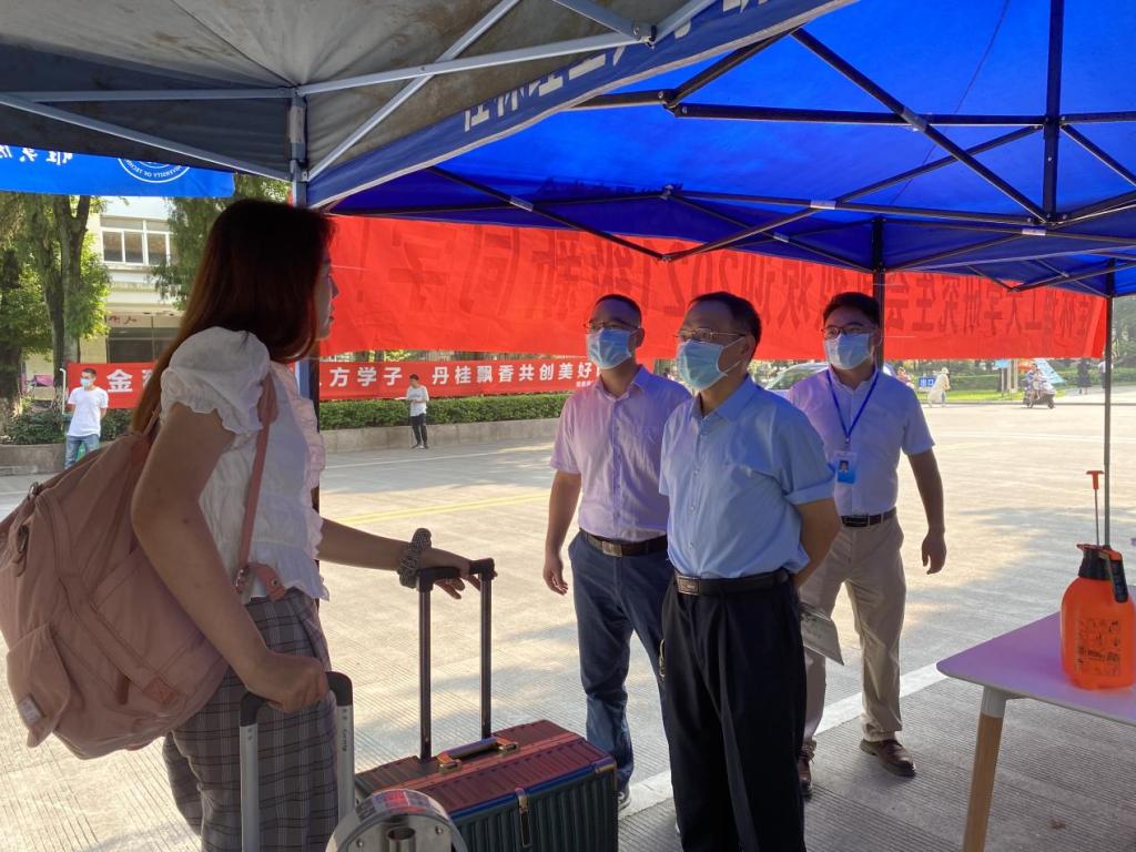 9月11日上午,在我校迎新工作首日,学校副校长周国清、研究生院副院长代俊峰教一行来到屏风校区校门口核验处、研究生迎新大本营和新生宿舍,检查指导迎新工作。