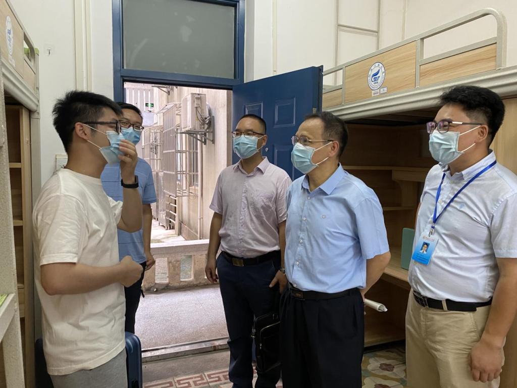 最后,周副校长一行来到8栋和4栋新生宿舍,检查了新生宿舍设施设备,巡查了新生入住环境,与已经入住宿舍的部分新生进行了亲切的交谈,对他们加入桂工大家庭表示热烈的欢迎,并勉励他们新起点不松懈,继续刻苦学习。