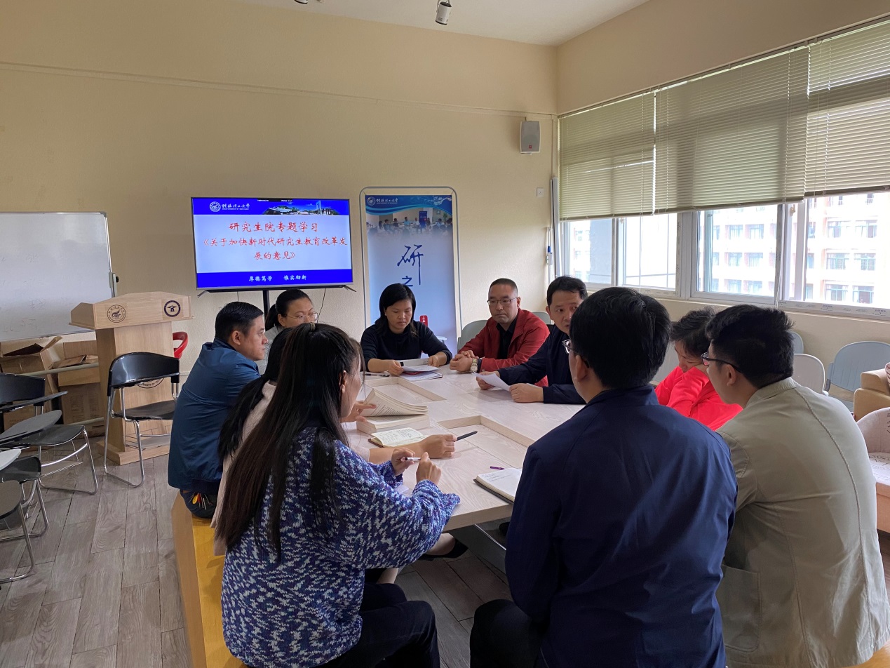 学习会上,方亮院长向大家解读了《教育部 国家发展改革委 财政部关于加快新时代研究生教育改革发展的意见》文件精神,研究生教育要以习近平新时代中国特色社会主义思想为指导,坚持育人为本,坚持需求导向,坚持创新引领,坚持改革驱动,以研究生德智体美劳全面发展为中心,把立德树人作为检验研究生教育工作的根本标准,增强研究生使命责任感,提升研究生知识创新和实践创新能力,加快构建优质高效开放的研究生教育体系。