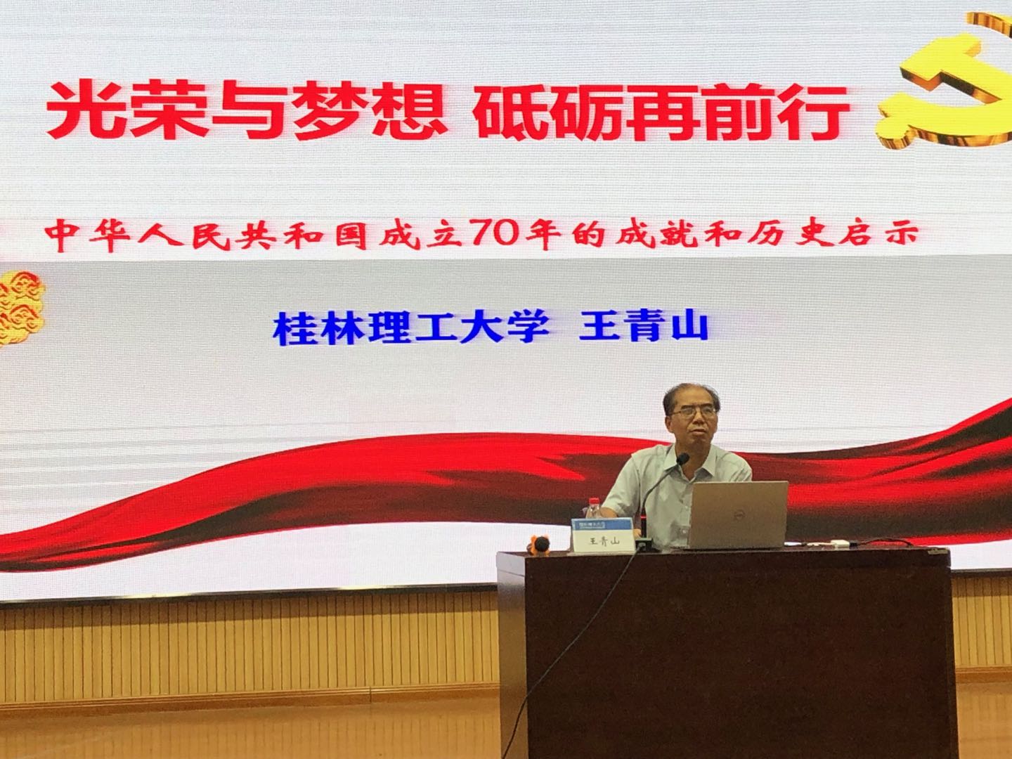 全体研究生新生党员前往雁山图书馆报告厅聆听了由马克思主义学院王青山书记主讲的《光荣与梦想,砥砺再前行—中华人民共和国成立70年的成就和历史启示》专题报告会。报告会主要从“中国为什么行”、“中国共产党为什么能“等几个方面展开论述新中国七十年的辉煌历程。同学们了解到中国之所以行,是因为找到了中国特色社会主义道路,是因为中国共产党始终为中国人民谋幸福,为中华民族谋复兴。新中国七十年的发展历程启示我们要始终坚持党的领导,坚持走自己的路,坚持和发展中国特色社会主义。
