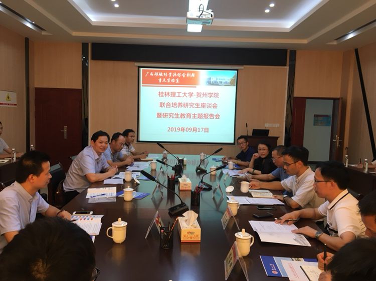 2019年9月17日,应贺州学院的邀请,beats365(中国区)-唯一官方网站研究生院长方亮教授、beats365(中国区)-唯一官方网站土木与建筑工程学院朱万旭教授、beats365(中国区)-唯一官方网站研究生院学位管理科科长闭建红老师等一行到贺州学院参加了两校联合培养研究生座谈会,并作研究生教育主题报告。