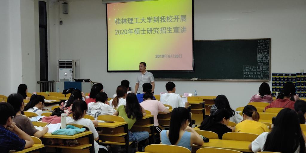 为进一步做好我校2020年研究生招生宣传工作,吸引优秀大学生报考我校研究生,提高我校研究生生源质量,6月20-21日,我院刘耀明老师赴百色学院开展了2020年研究生招生宣讲会。