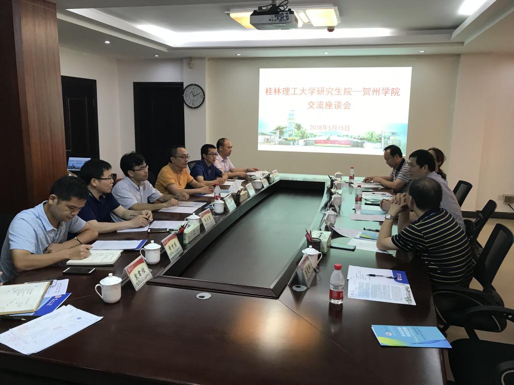 5月15日,研究生院方亮院长率领研究生院一行前往贺州学院调研。贺州学院党委委员、副校长吕海波教授,党办校办、学工部(处)、设计学院、旅游与体育健康学院、材料与环境工程学院、科研处等相关部门负责人参加座谈。