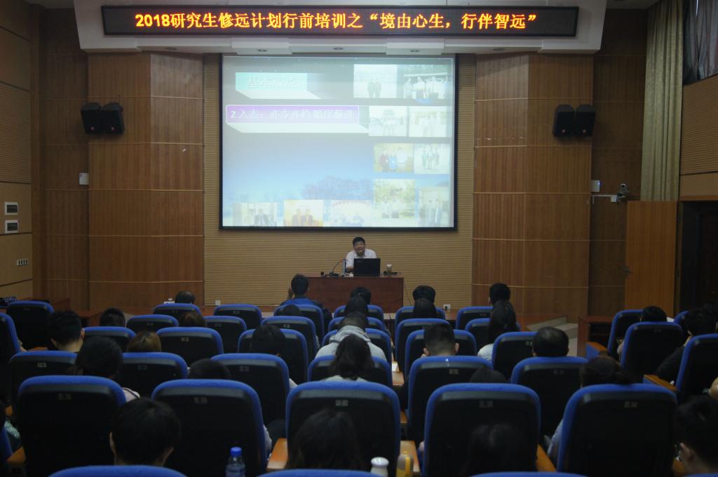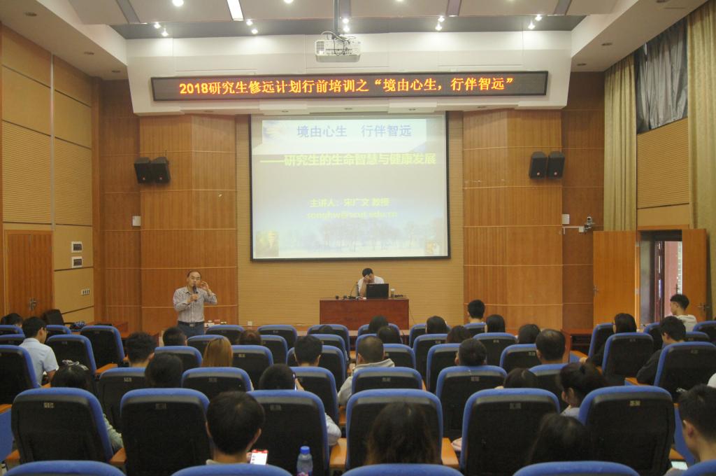 5月7日,研究生院在雁山校区萃华楼报告厅举办了2018年研究生修远计划行前培训专题讲座,此次讲座是2018年研究生修远计划行前培训的第一场,特邀华南理工大学心理学教授、博士生导师宋广文老师为大家进行出国心理健康教育,旨在针对留学生可能出现的各种心理问题或困难,通过心理学的理论方法,引导学生学会适应、合作、发展,以最佳的状态适应国外的生活和学习,圆满完成修学任务。研究生院副院长、研工部副部长金峰老师及研究生院相关负责老师出席,参加修远计划的同学全部参加。