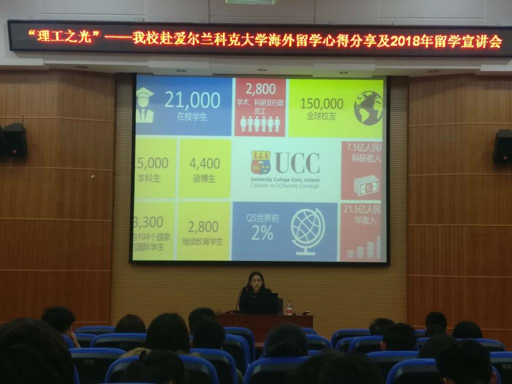 3月12日,研究生院、校团委在雁山莘华楼学术报告厅举办了爱尔兰科克大学2018年留学宣讲会。此次宣讲会邀请了北京办事处的郝娜萱老师为大家介绍爱尔兰科克大学及海外留学相关事项。