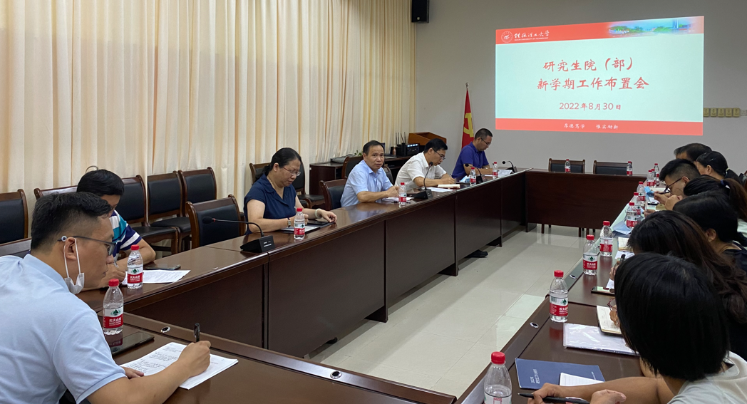 8月30日下午,研究生院(部)在屏风校区体育馆副楼116会议室召开新学期工作布置会,副校长周国清出席,研究生院(部)全体人员参加。会议由院(部)长张树光主持。