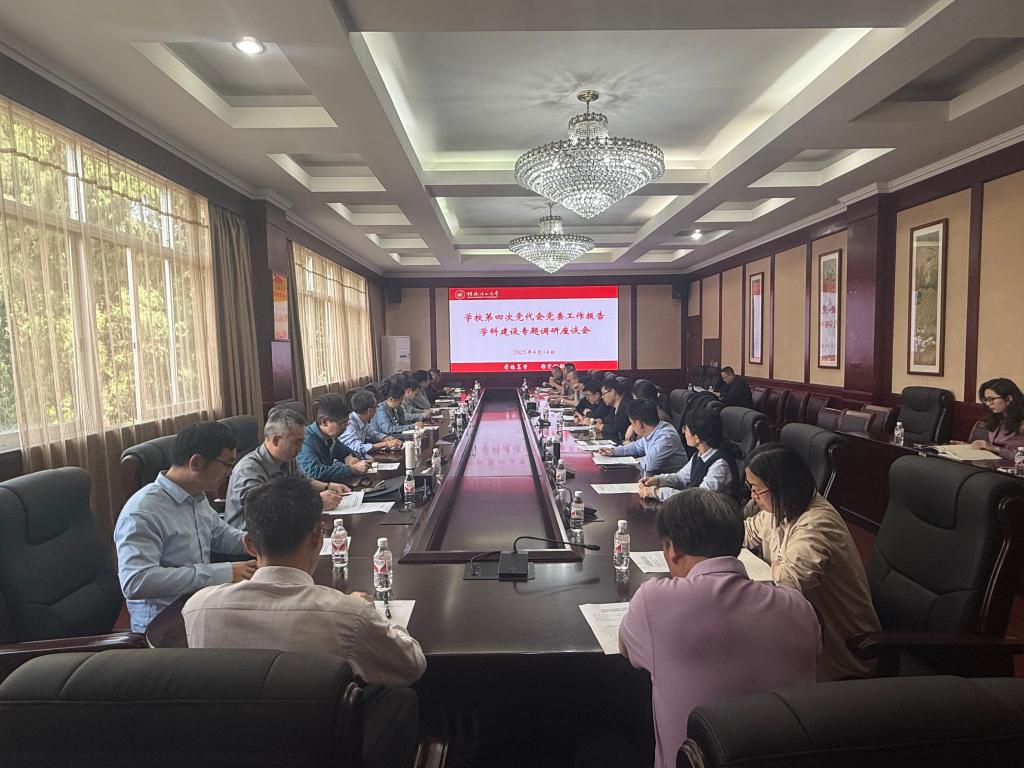 4月14日下午,研究生院(学科办)在屏风校区教八楼三楼会议室组织召开第四次党代会党委工作报告—学科建设专题调研座谈会。学校副校长周国清出席会议并讲话,各二级学院负责人,人事处、发展规划处、本科生院、科学技术研究院、财务处等职能部门负责人参加会议,会议由研究生院院长、学科建设办公室主任钱凯主持。