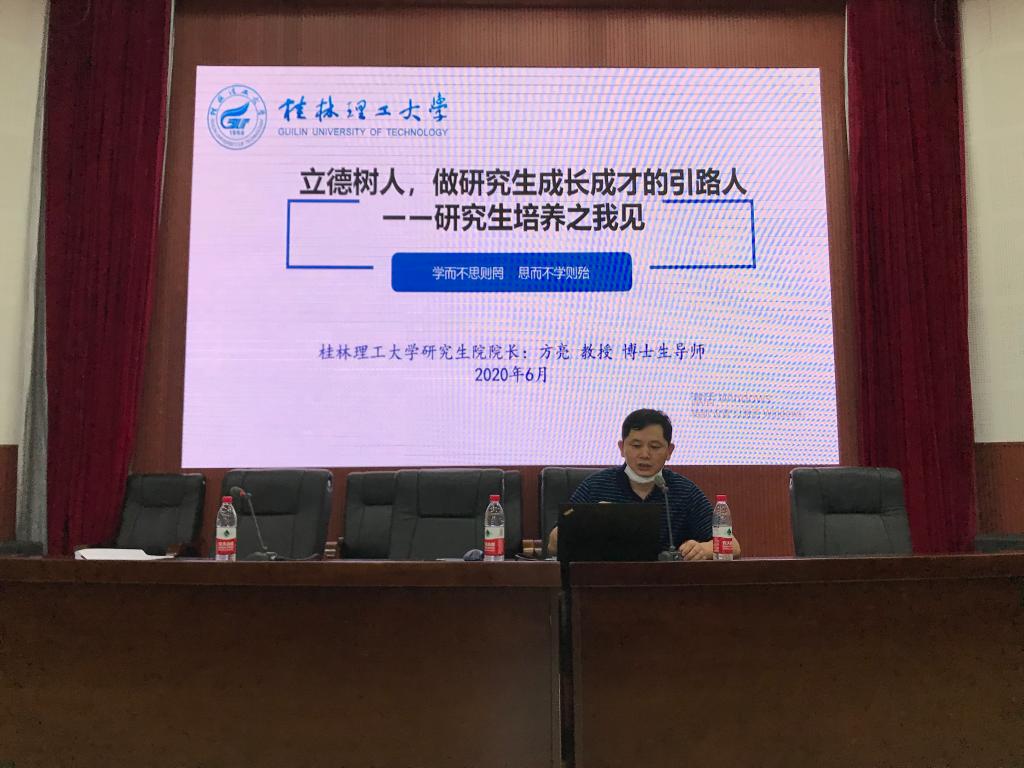 2020年6月19日,beats365(中国区)-唯一官方网站研究生院长、研工部部长方亮教授应桂林电子科技大学邀请参加其2020年研究生导师立德树人职责学习培训会暨硕导岗前培训会并作了题为《立德树人,做研究生成长成才的引路人——研究生培养之我见》的主题报告。桂林电子科技大学高度重视本次培训报告会,会议由桂林电子科技大学研究生院院长王荣教授主持,桂林电子科技大学各学院分管研究生工作副院长、140余名桂林电子科技大学新晋硕士生导师和40余名桂林航天工业学院领导老师参加了会议。