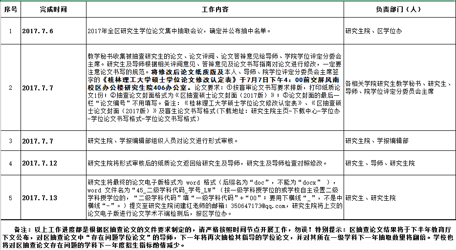 2017年广西区抽查硕士学位论文修改工作安排表