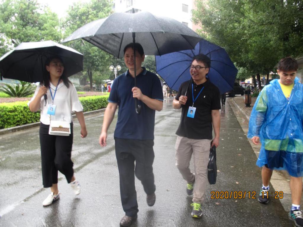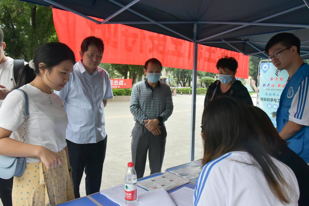 学校副校长周国清(中)在屏风校区检查指导研究生迎新工作