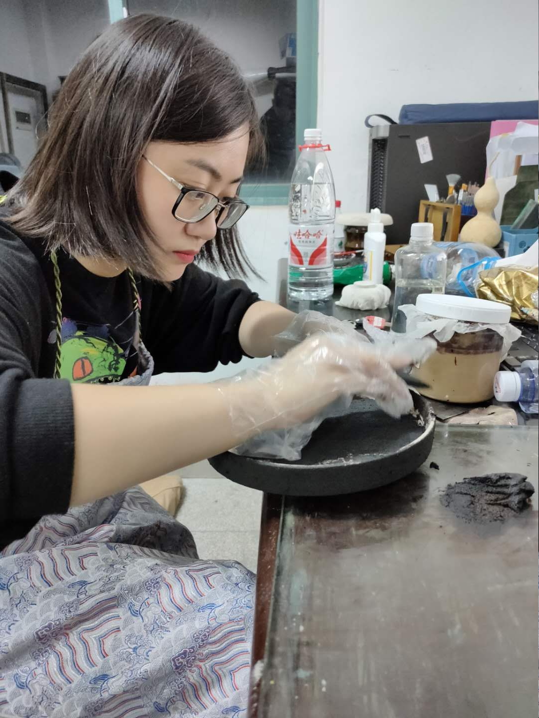 于易辰同学在进行艺术创作