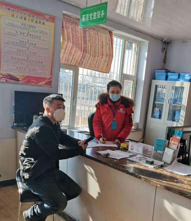 郭翠同学在社区居委会进行志愿服务工作