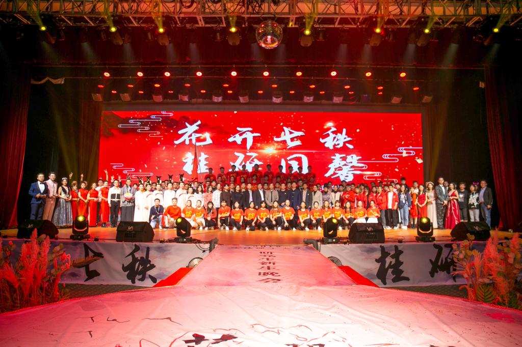 2019年11月15日,为庆祝中华人民共和国成立70华诞、学校建校63周年以及热烈欢迎2019级研究生新生,由党委研工部主办、校研究生会承办的2019年研究生“花开七秩,桂研同馨”新生晚会在我校屏风校区体育馆隆重举办。学校副校长陈学军、党委研工部主要负责人、部分学院党委书记以及分管研究生副院长出席了晚会,与来自15个学院的1000余名研究生欢聚一堂,共享文化盛宴。