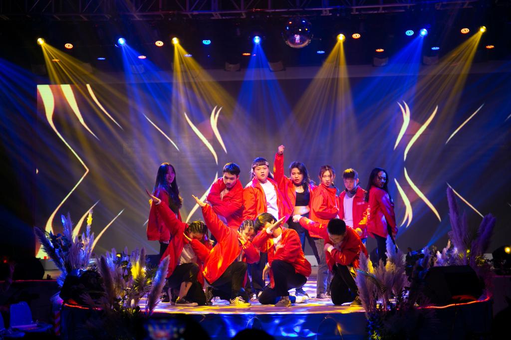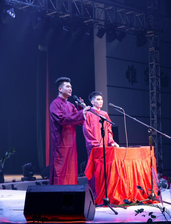 本次晚会共有16个节目,由研究生们自编自导自演,历时两个多月的精心筹备,前后历经6次彩排。晚会由“花朝月夜”、“锦瑟年华”和“七秩盛世”三个篇章构成。其中,“花朝月夜”篇章预示这将会是一个精彩纷呈、令人难忘的夜晚;“锦瑟年华”篇章展现2019级研究生新生们积极投入到新的学习生活、开启人生新篇章的雀跃心情;“七秩盛世”篇章饱含了桂工青年学子祝贺祖国母亲七十华诞的深情。晚会在活力四射的街舞表演中拉开序幕。炫目的灯光下,青春律动的节拍瞬间点燃了全场;动感的乐队,用鼓点敲击青春的节奏,展现青年学子独有的魅力;时装走秀,摩登时尚;宛转悠扬的乐器演奏碰撞上活泼优美的舞蹈,带给观众们意想不到的表演;妙趣横生的相声,让观众回味无穷;慷慨激昂的朗诵,引发观众的共鸣;诙谐幽默的情景剧,让台下观众笑逐颜开、掌声连连;热力四射的歌曲串烧燃爆现场。最后,晚会在《我和我的祖国》大合唱中圆满落幕。除了欢乐精彩的节目之外,晚会还设置了抽奖互动环节。