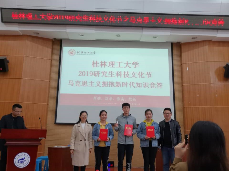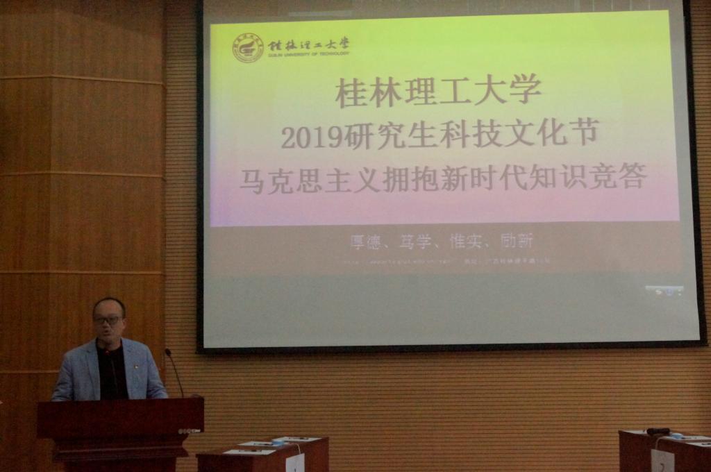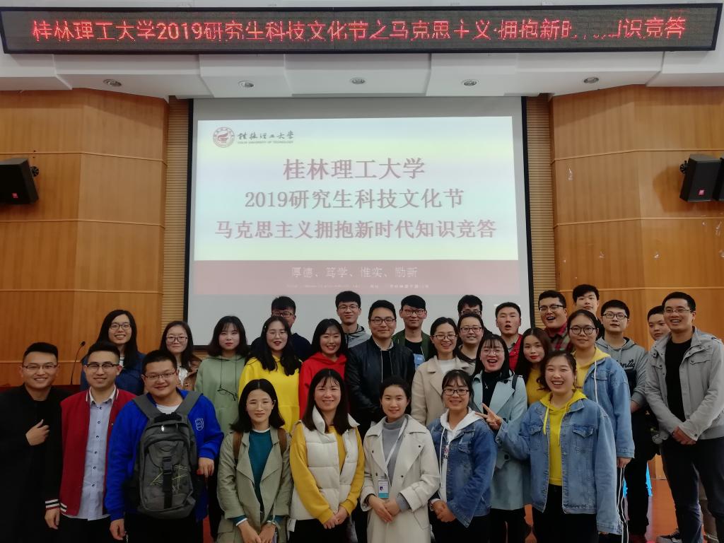 4月14日,“马克思主义*拥抱新时代”知识竞答于beats365(中国区)-唯一官方网站雁山校区萃华楼报告厅举行。马克思主义学院院长助理蒋晓俊老师、辅导员李碧仙老师、研究生院王兆杰老师、9组参赛选手以及100余位研究生参加了此次活动。