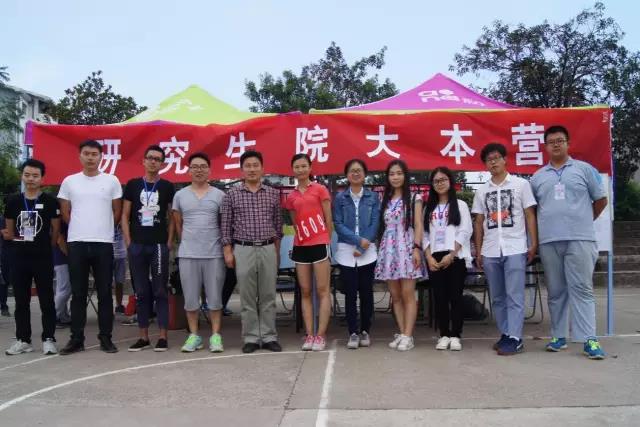 赛场上研究生院运动健儿全力以赴,不断追寻着“更快更高更强”的体育精神;赛场外校研会同学认真坚守,为运动会的后勤工作持续发热,给同学们送上及时的关怀与照顾,保证各项比赛顺利进行。张雷老师亲自到大本营慰问大家,并强调:“安全第一,比赛第二;赛出风格,赛出水平”,同时也对研会成员的工作表示肯定,并与值班同学们亲切合影留念。