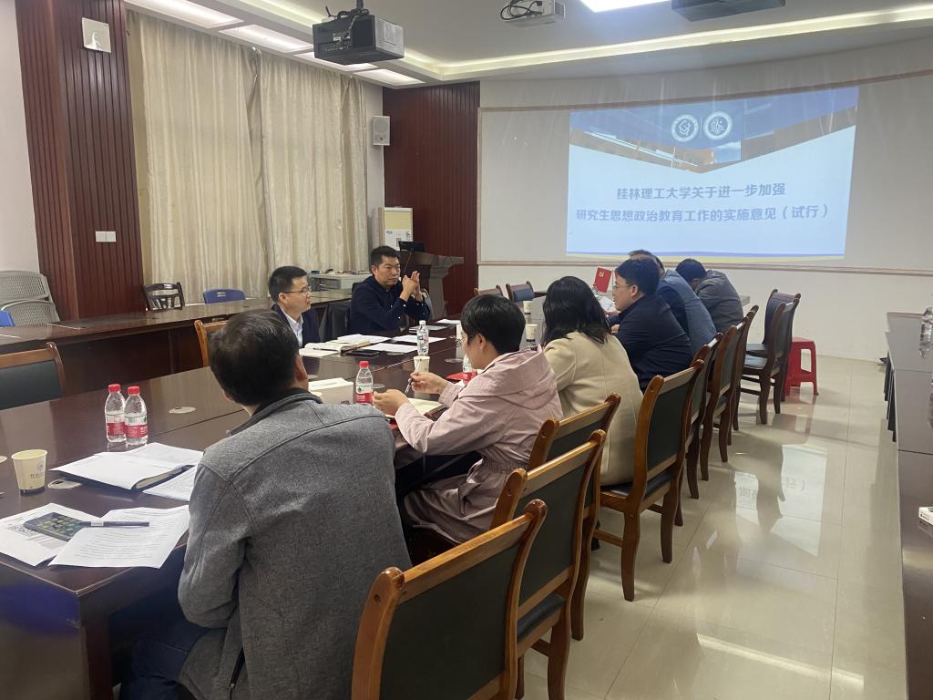 3月7日下午,化学与生物工程学院党政领导班子、研究生辅导员、教学秘书及研究生导师代表共同学习了《beats365(中国区)-唯一官方网站关于进一步加强研究生思想政治教育工作的实施意见(试行)》桂理工党[2023]2号文件内容,并就学院研究生思想政治教育和日常管理工作进行了研讨。