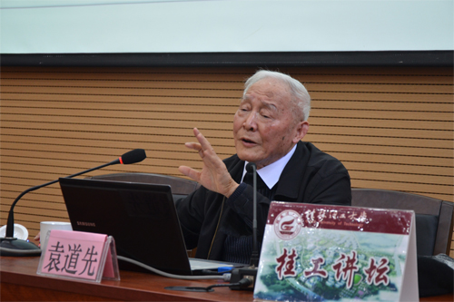 12月24日下午,中国科学院袁道先院士和中国地质科学院岩溶地质研究所曹建华研究员在雁山校区广西矿冶与环境科学实验中心报告厅分别做了题为“地球关键带——以岩溶区为例”和“岩溶生态系统与环境”的学术报告。报告会由副校长王敦球教授主持,环境科学与工程学院相关专业的教师、研究生和本科生聆听了报告。
