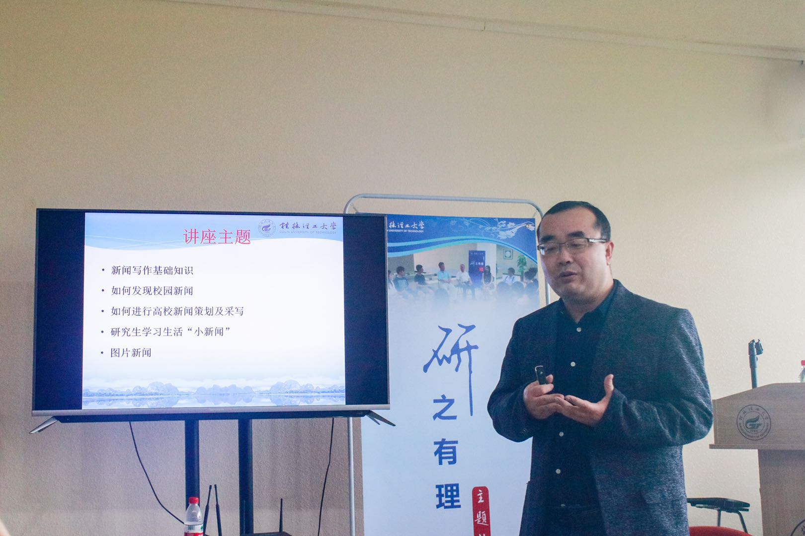 5月7日下午,研究生院在行知楼B608举办了题为“新闻写作与摄影”的主题沙龙。沙龙邀请我校宣传部王英强老师作为主讲嘉宾,校研究生会、创新创业中心、自管中心的相关学生干部参加。