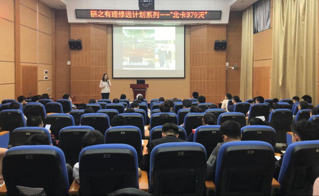 3月21日,研究生院在雁山校区萃华楼报告厅举办了“研之有理”修远系列——“北卡379天”。此次沙龙邀请了环境科学与工程学院2016级博士研究生宋晓红与大家分享北卡罗来纳州大学格林斯伯勒分校(UNCG)访学见闻。