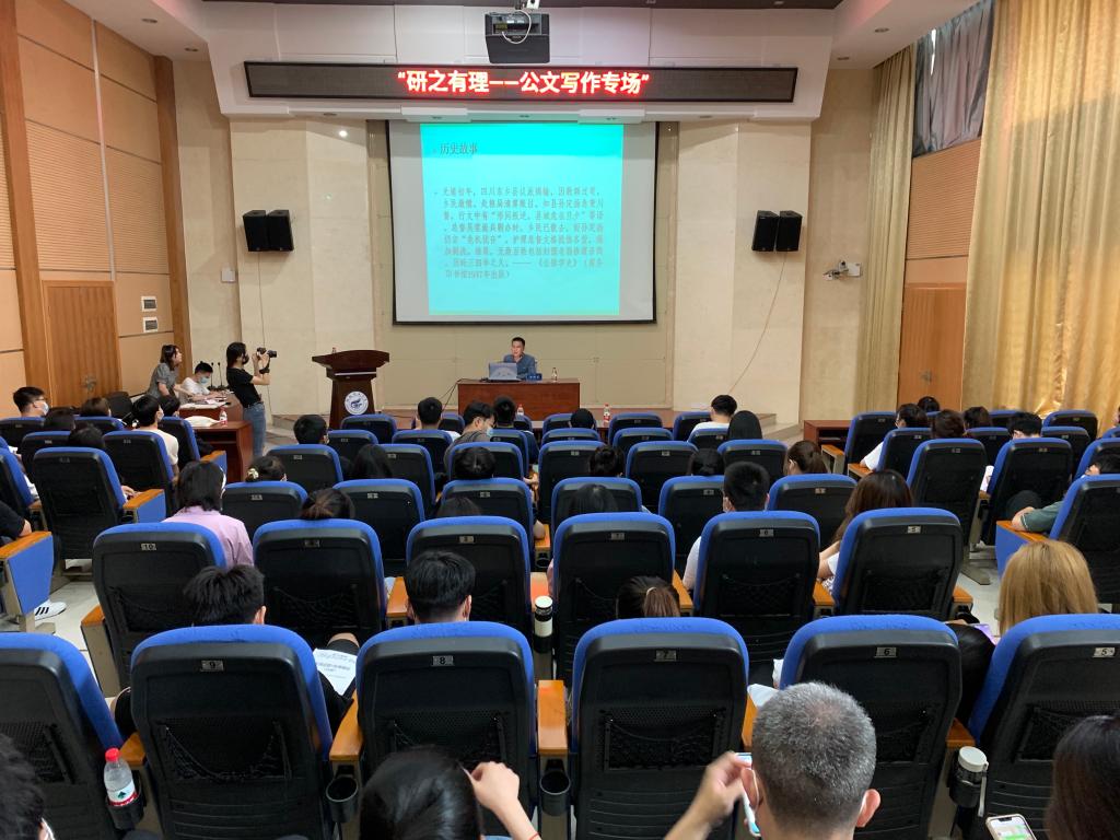 5月18日下午,由研究生创新创业中心主办的“研之有理—公文写作专场”在雁山校区萃华楼报告厅正式开讲。党办、校办副主任黄敬秀老师出席会议并作主旨发言,研究生院各级组织学生干部参与会议。