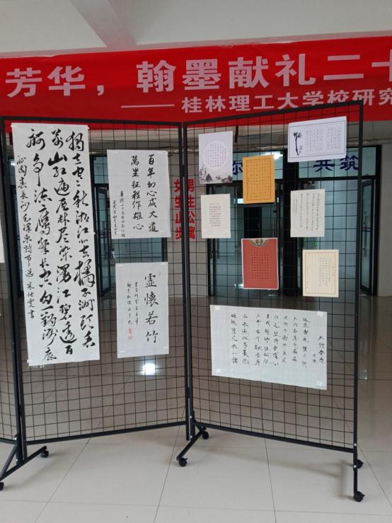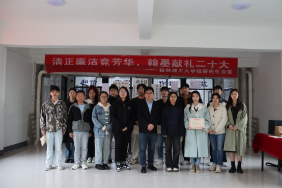 2023年3月17日,由党委研究生工作部主办、校研究生会承办的“清正廉洁竞芳华·翰墨献礼二十大”书法作品展览暨颁奖仪式在雁山校区研究生公寓大厅成功举办。党委研究生工作部负责人及获奖学生代表出席活动。