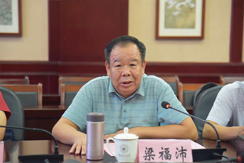 会上,梁福沛对朱华一行莅临我校调研指导工作表示欢迎,并对学校基本情况进行了介绍。朱华说明了本次调研目的。随后,发展规划与教学质量监控中心(学科建设办公室)负责人从体制机制改革、标志性成果、存在的难点和原因、发展对策与建议等方面汇报了我校学科建设进展情况。参会人员围绕调研重点,就落实广西一流学科建设目标、成功经验与创新做法、问题与原因分析等内容进行了发言,提出了意见建议。