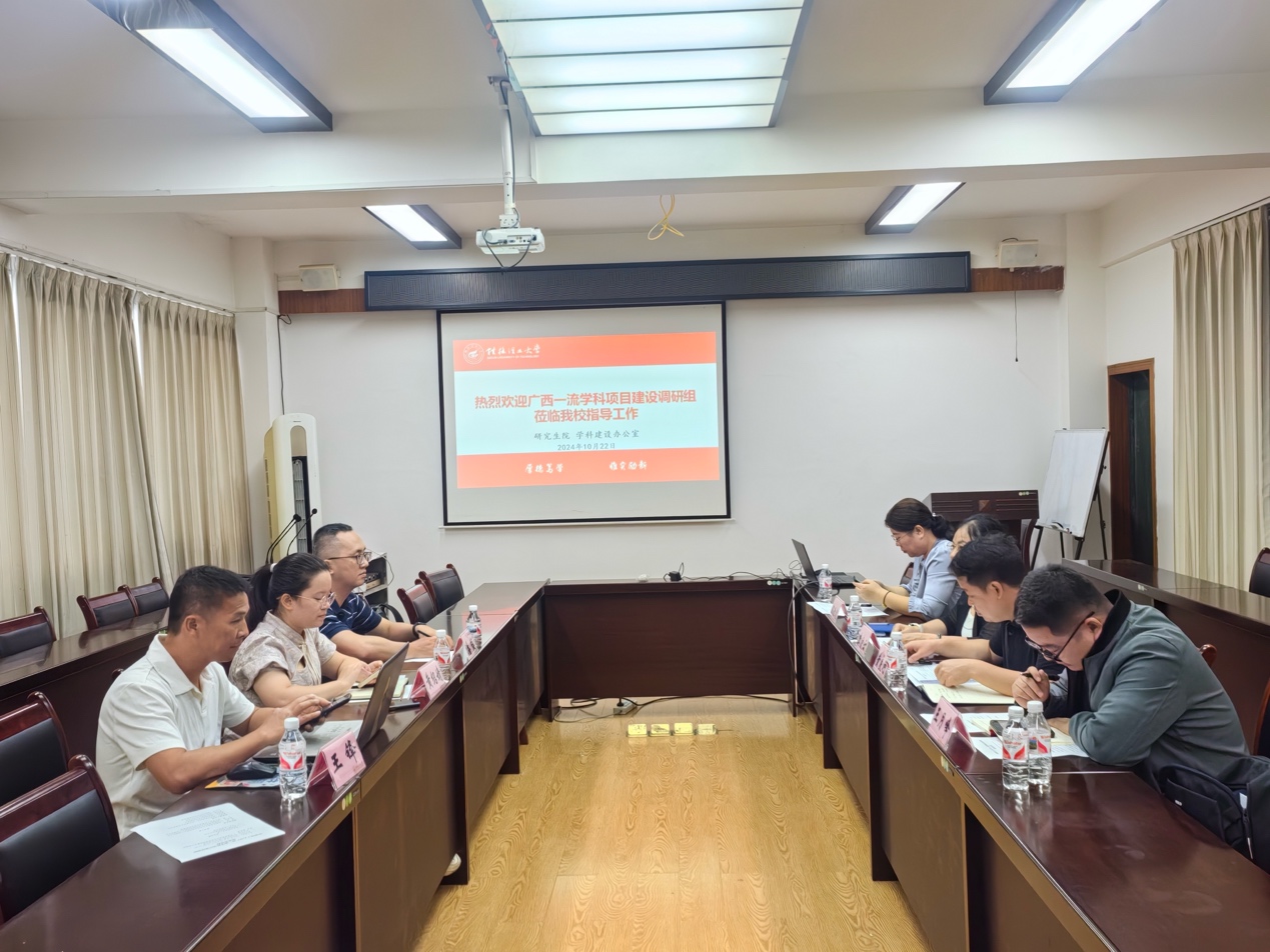 10月22日下午,广西一流学科项目建设调研组一行来我校就一流学科跨校共建成效展开调研交流。研究生院副院长、学科建设办公室副主任莫凌云在屏风校区教八楼8415会议室热情接待了来访客人。测绘地理信息学院相关负责人及教师代表参加座谈交流。